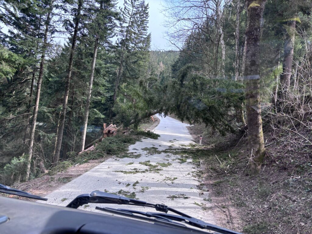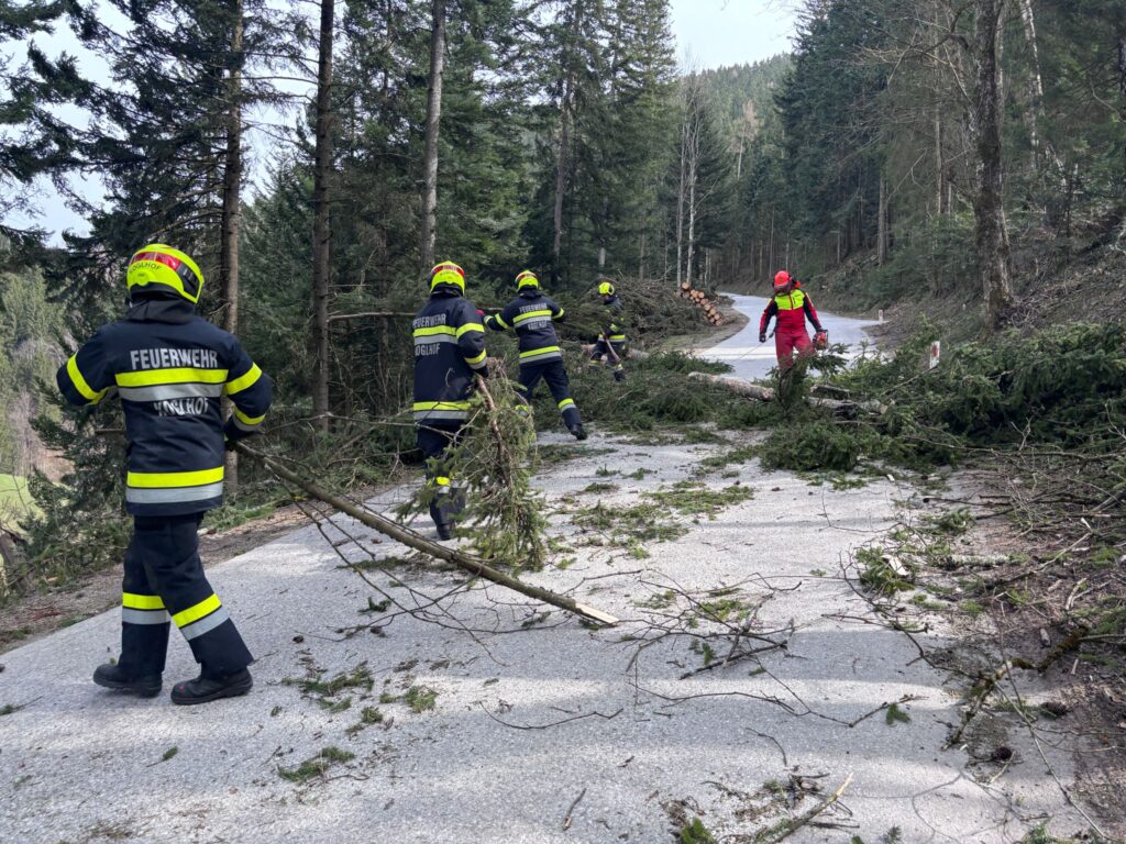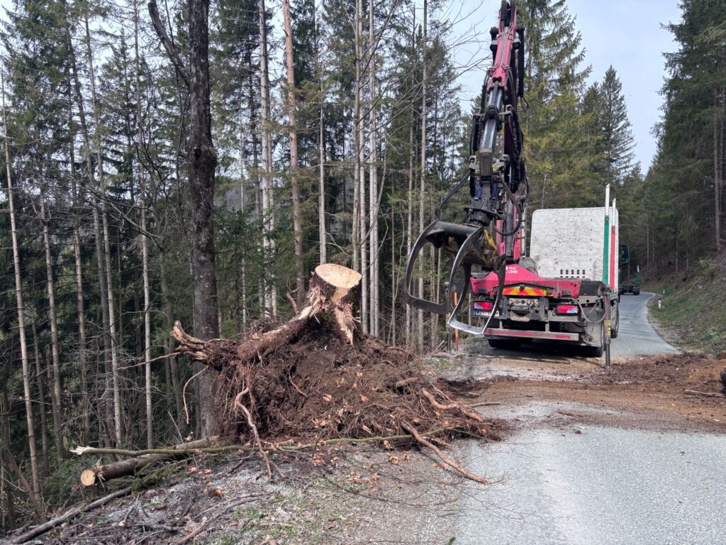 Am 27.03.2026 wurden wir um 10:36 nochmals zu einer Baumbergung alarmiert. An der Einsatzstelle angekommen wurde diese wieder erst abgesichert und anschliesend der Baum mittels Kettensäge entfernt. An einem zweiten Einsatzort musste ein Bum sammt Wurzelstock entfernt werden. Dabei half uns ein zufällig am Einsatzort vorbeifahrender Holztransporter den Wurzelstock von der Straße zu bringen.